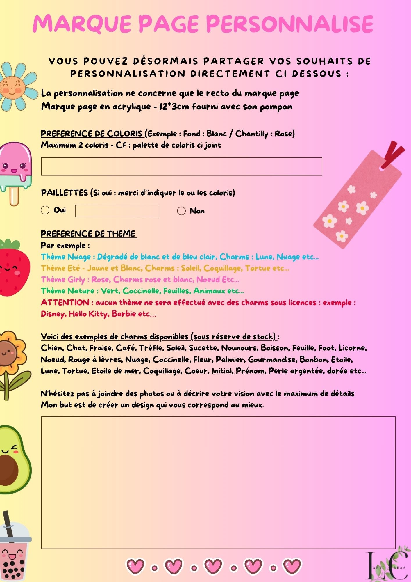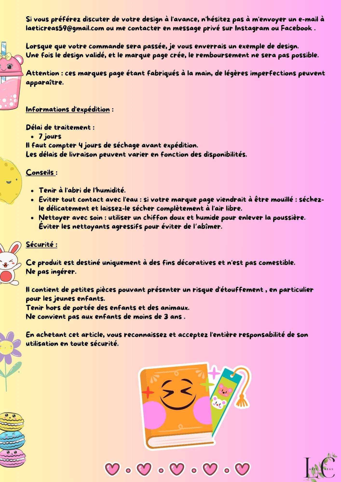 Une fois le design validé, et le marque page crée, le remboursement ne sera pas possible.